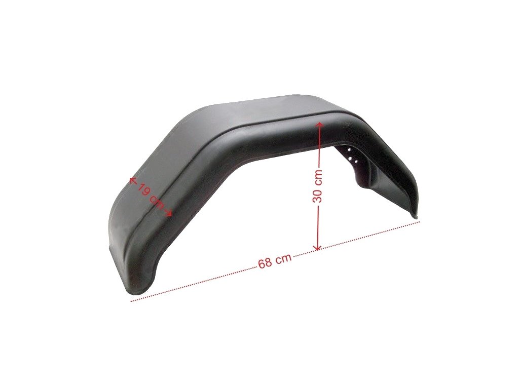 Blatník je symetrický podél příčné osy, t.j. lze ho použít na pravou i levou stranu přívěsu. V boční straně blatníku jsou předlisované 3 otvory pr. 10 mm a 6 otvorů pr. 8 mm pro uchycení blatníku.