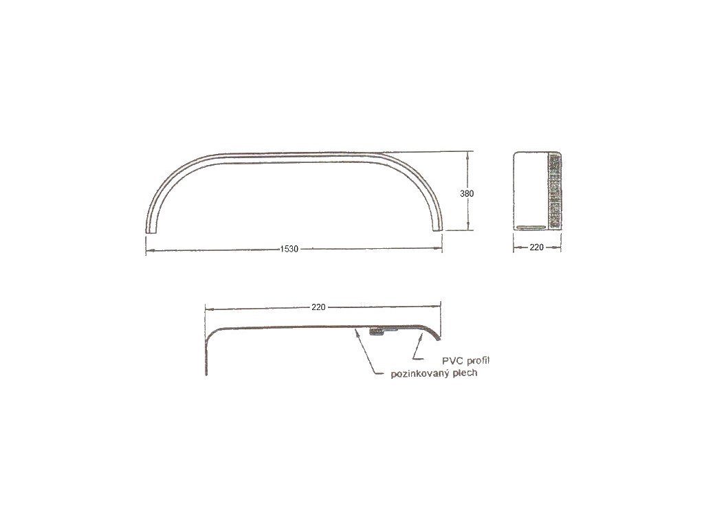 Blatník tandemový kombi š220 mm/d1530 mm s gumovým lemem (2.jakost)