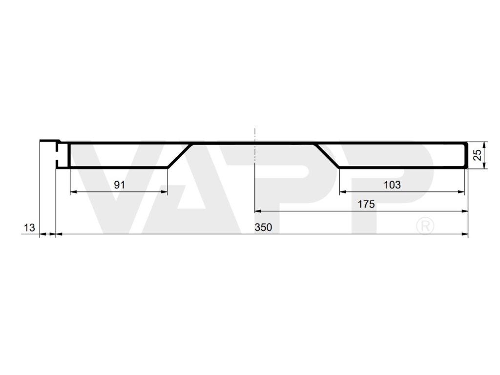 Výška profilu bočnice: 350 mm + 15 mm