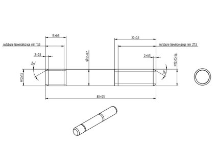 Čep závitový (svorník - šteft) do bubnu KNOTT 200x50 10" FITZEL