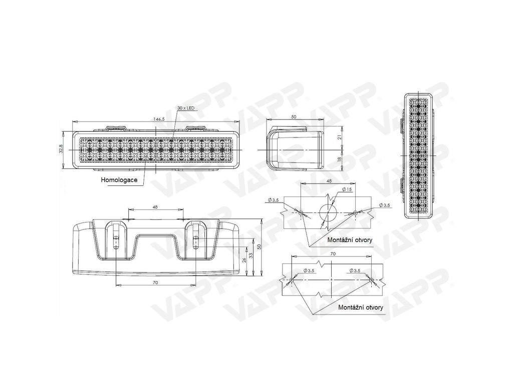 Denní světlo WAS W86 (30 LED), 12-24V,