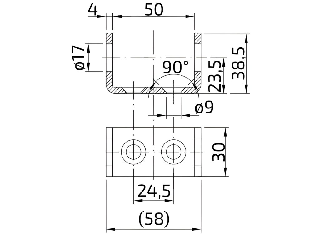 Samostatný galvanicky zinkovaný držák čepu pantu. Síla materiálu je 4 mm. Otvory jsou vyvrtány pro čep o průměru 16 mm.