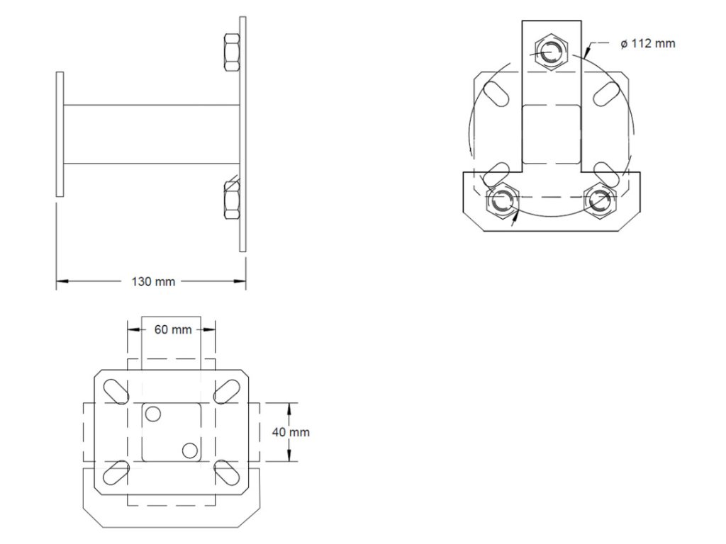 - Držák je určený pro kolový úchyt 112x5 (pětiděrový úchyt, průměr roztečné kružnice kolových šroubů 112 mm)