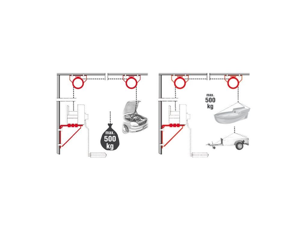 Praktický nástěnný držák navijáků AL-KO OPTIMA/BASIC se dvěma kladkami umožňuje přichycení držáku na zeď, a jeho využití ke zvedání těžkých předmětů (např. lodí). Maximální nosnost držáku je 500 kg.