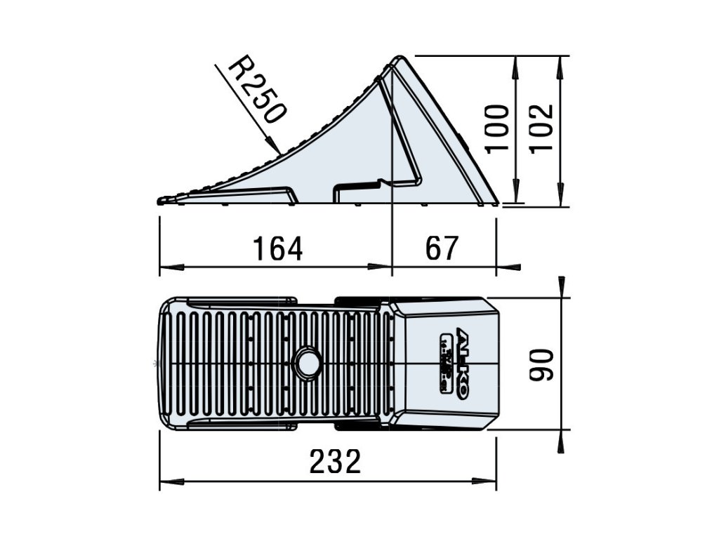 - Klín je vhodný pro zakládání kol o maximálním zatížení kola 800 kg a o statickém poloměru kola do 310 mm