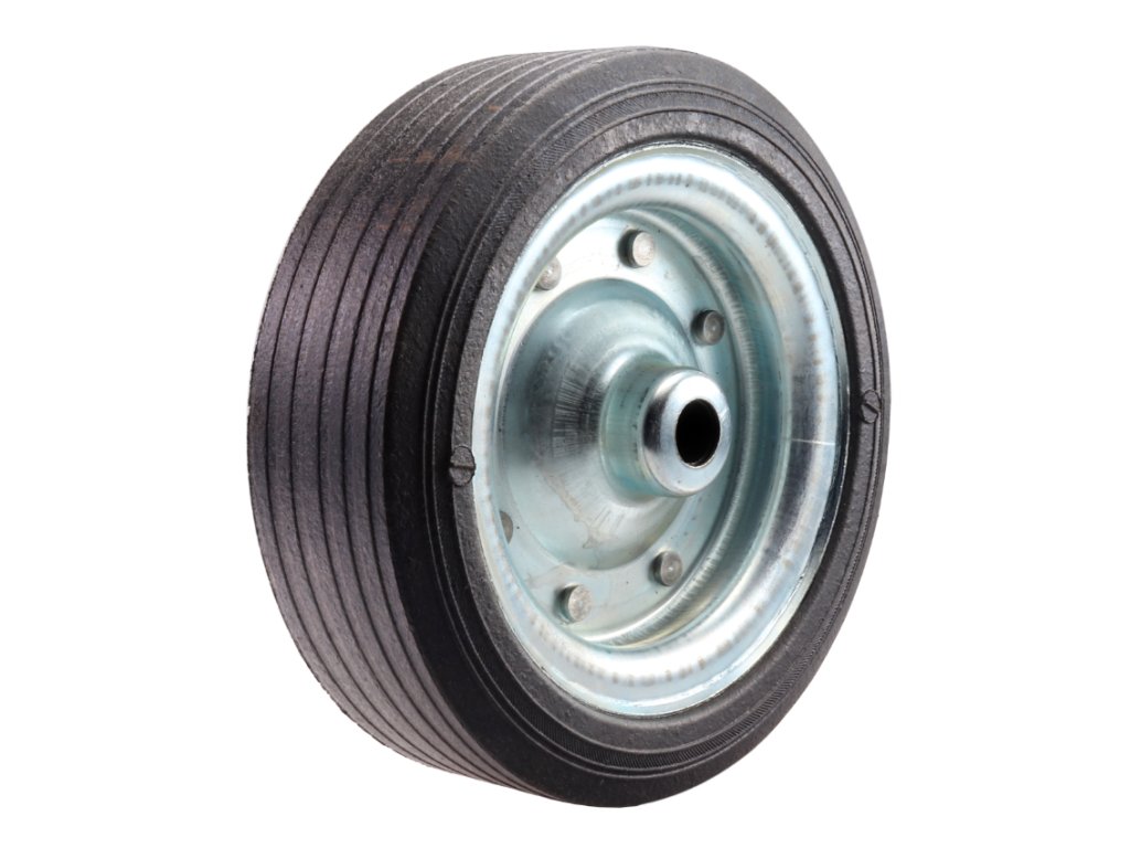 Kolečko má plechový pozinkovaný disk, středové uložení osazeno plastovým pouzdrem pro průměr čepu 20 mm.