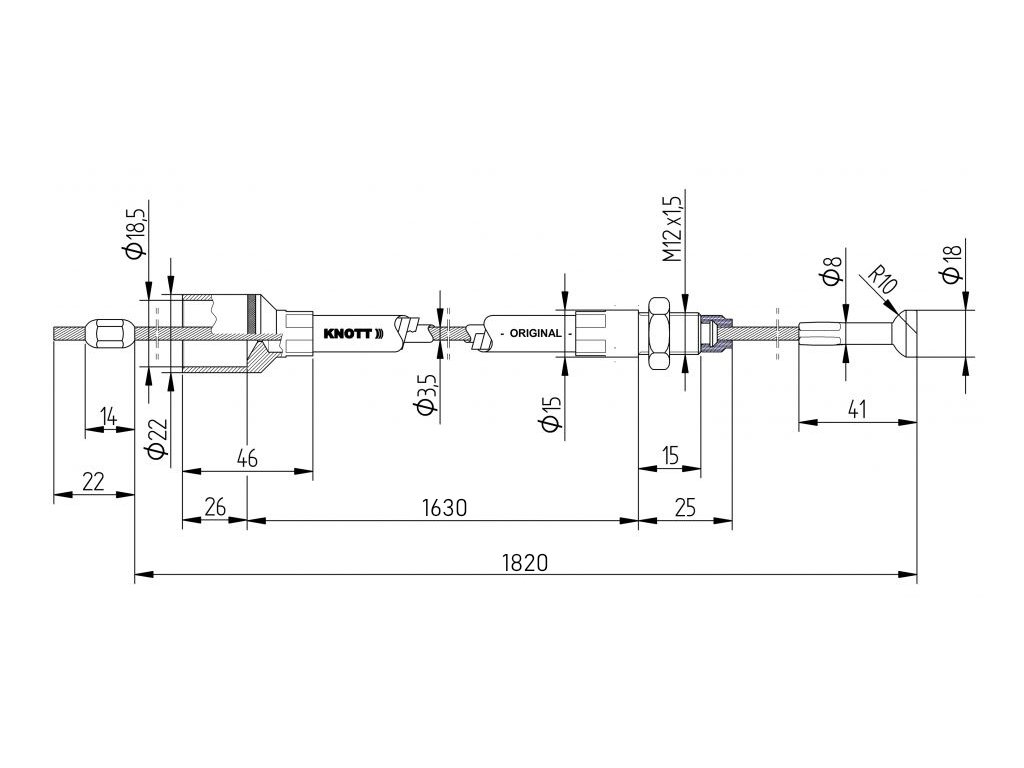 Lanovod brzdový KNOTT 1630/1820 mm rychlomont. (s čočkou)