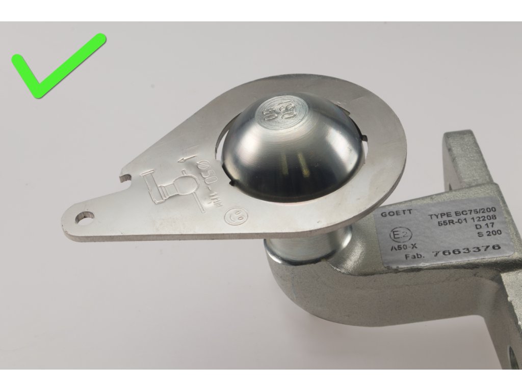 - Dle přílohy 5 předpisu č. 55 EHK/OSN je předepsaný průměr koule 50 mm s tolerancí h13 (+ 0 mm / - 0,39 mm), t.j. nová spojovací koule má předepsaný průměr 49,61 mm až 50,00 mm.