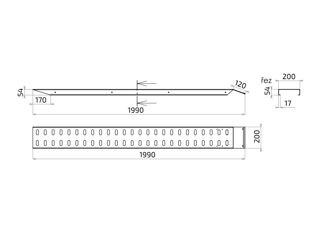 Nájezd 1990/200 mm rovný pozink (500 kg na pár) VAPP