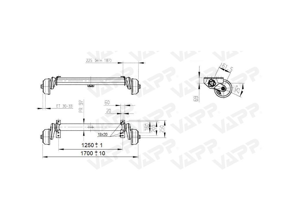 Náprava AL-KO Compact B 1200-6 (1350 kg) a=1250 mm, c=1700 mm, 2051, 112x5