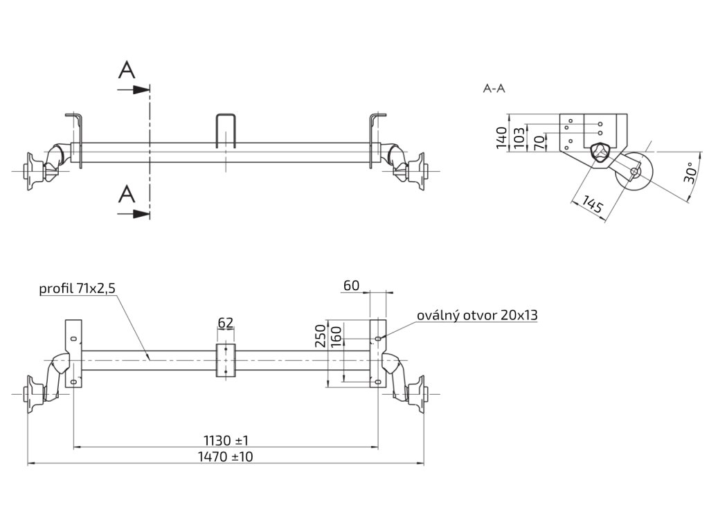 Náprava AL-KO UBR 700-5 (750 kg) a=1130 mm, c=1470 mm, 100x4, patky 140 ven