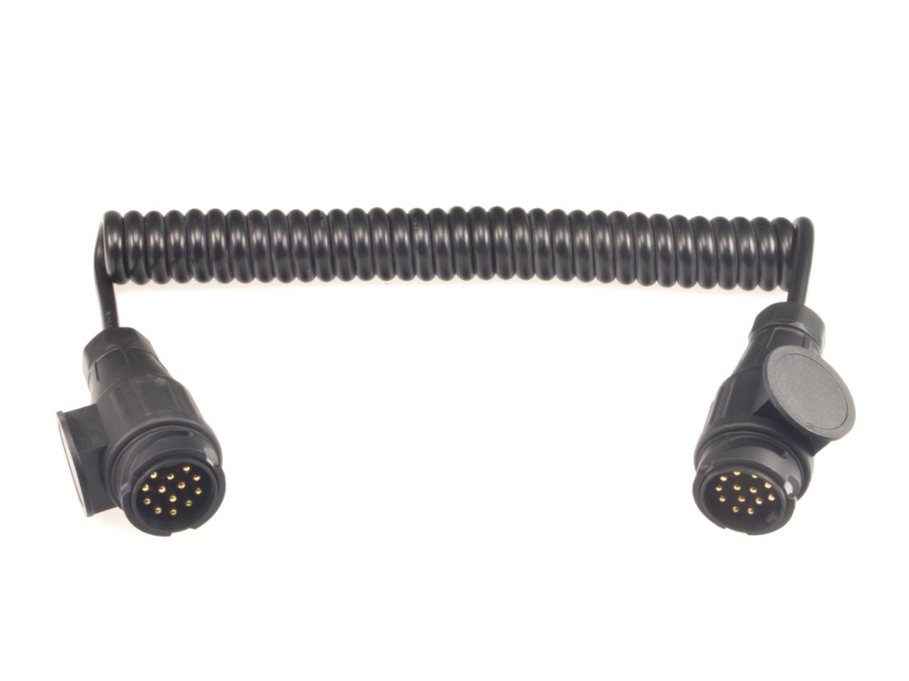 Praktický propojovací spirálový kabel zakončený dvěma zástrčkami ISO 11446 (12V, 13 pin).