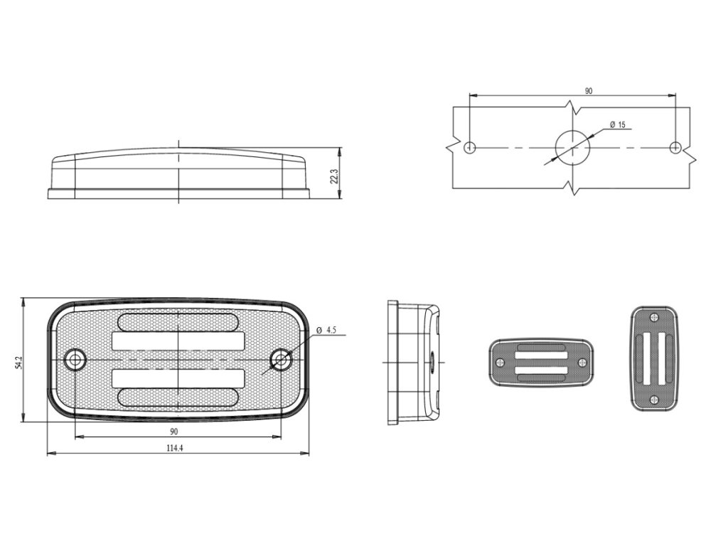 Svítilna boční obrysová LED WAS W158 12-24V, na držáku