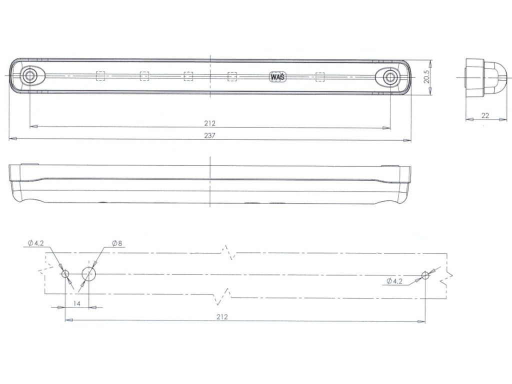 Svítilna brzdová doplňková LED červená WAS W87/682, 9-36V