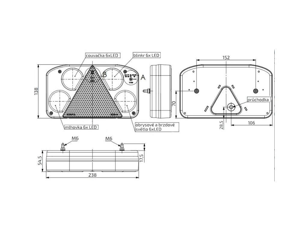 Svítilna HORPOL LZD 844 sdružená LED, P-BL/BR/KO/CO/ML s průchodkou