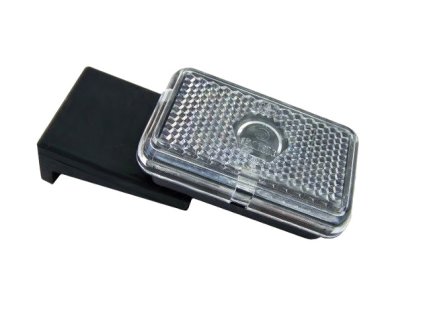 Přední obrysová svítilna AJ.BA s bočním držákem. Držák je zhotoven z houževnaté ohebné gumy a opatřen otvory pro dva šrouby M6 v rozteči 15 mm. Do svítilny se osazuje sufit žárovka typu C5W. Žárovka není součástí balení, je nutné objednat vzlášť.