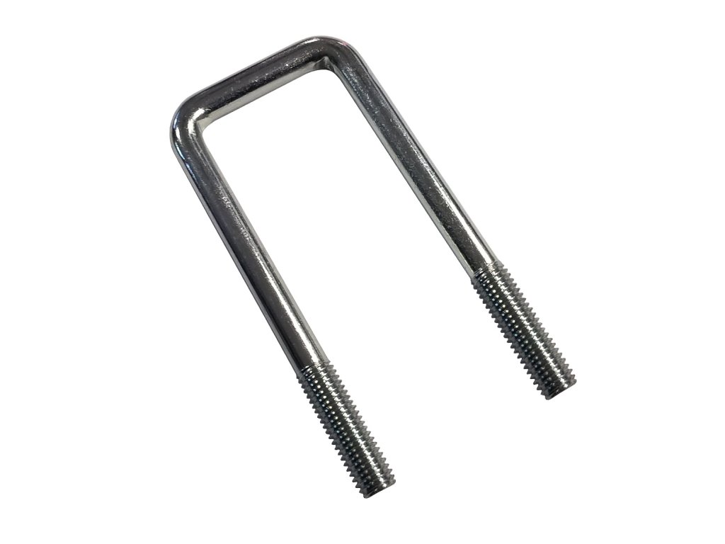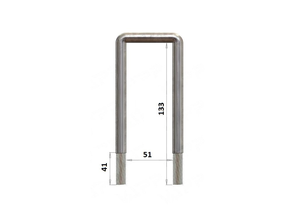 Ocelový galvanicky pozinkovaný třmen se závity M12 je dodáván bez podložek a matic. Závity jsou na třmenu tzv. naválcované, t.j. délka závitu je pevně daná a závit nelze proříznout dál. Průměr kulatiny třmenu je 11 mm.