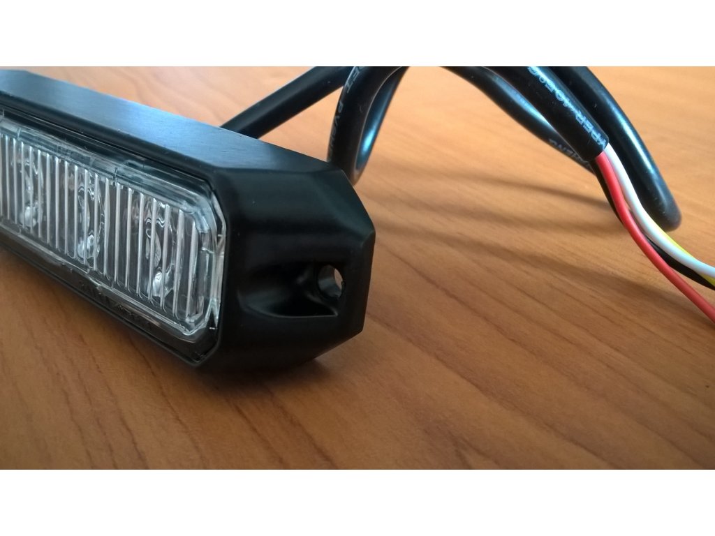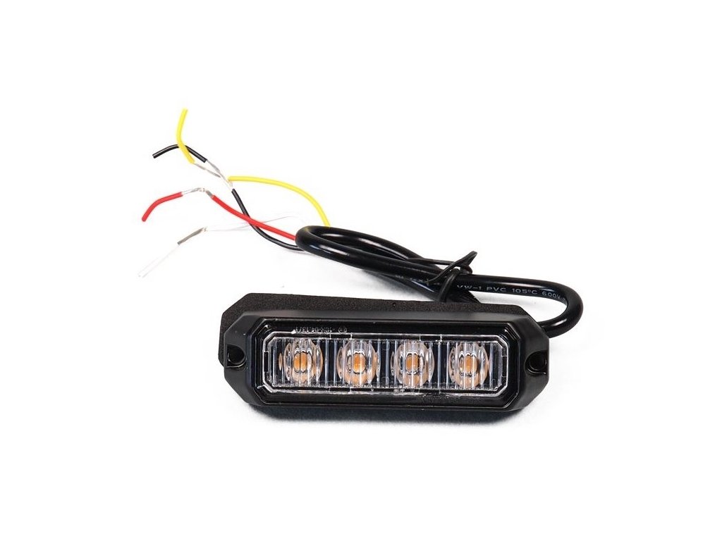 - Nízkoprofilová oranžová záblesková svítilna osazená čtyřmi vysocesvítivými LED diodami